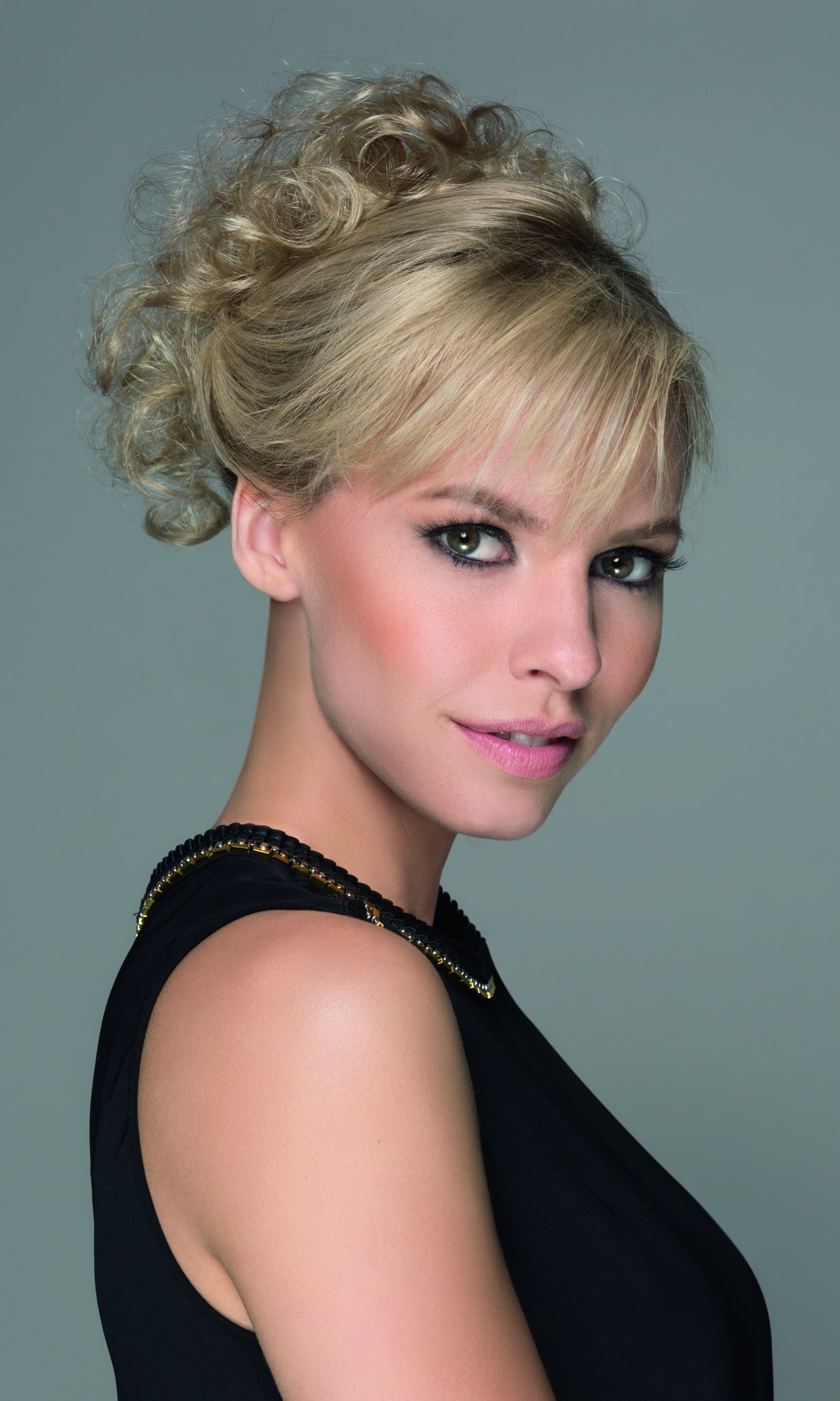 Sherry is een synthetisch haarstukje met 2 drukgevoelige clips, ideaal om te verwerken in een opsteek kapsel. Kleur op de foto is light blonde.