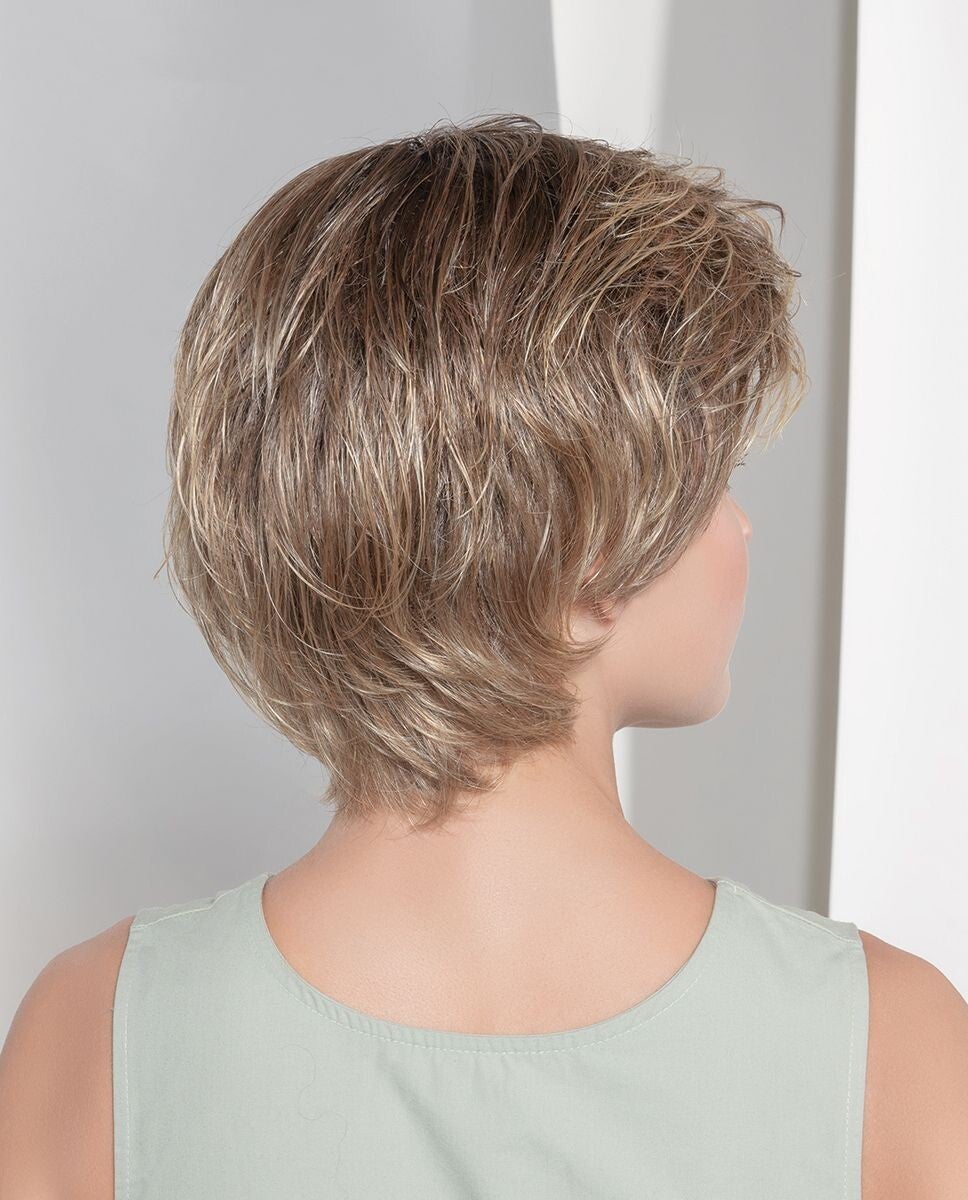 In het gebied van het hele bovenhoofd bevindt zich monofilament - een weefsel onzichtbaar op de huid - waarin het haar individueel wordt geknoopt in fijn handwerk. De achterkant van het hoofd van deze pruik bestaat uit een dichtgeweven capconstructie, waarbij het haar kunstig is genaaid op fijne katoenen linten. De kap/muts past zich zeer goed aan de vorm van het hoofd aan en heeft een zeer goede luchtcirculatie. In het gemakkelijk zichtbare gebied van het bovenhoofd zorgt het handgeknoopte monofilament voor een natuurlijke uitstraling.